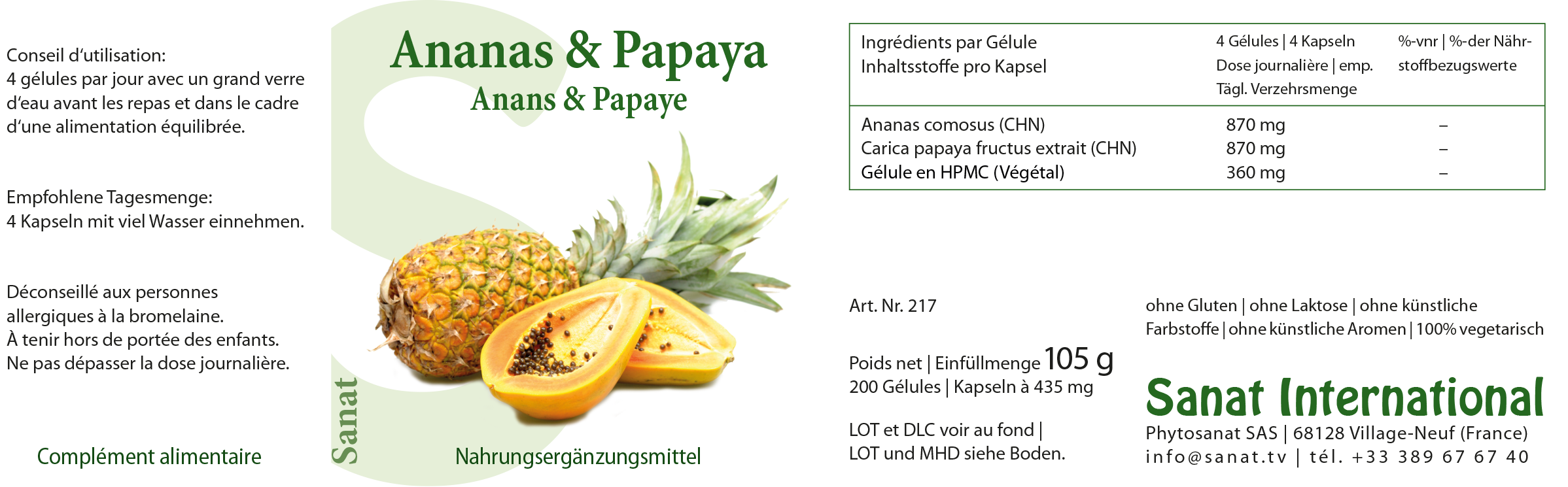 Ananasstiele CHN und Papayafruchtextrakt CHN zu je 50%