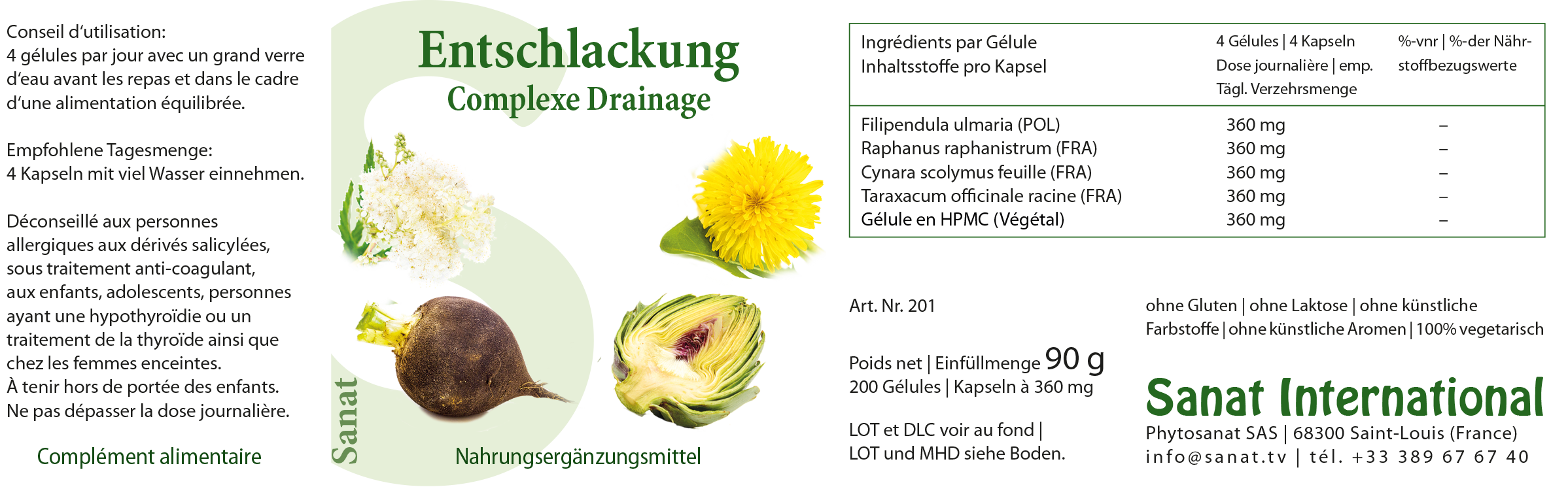 Wiesenkönigin Blüten-/ Blätterpulver POL 25%, Schwarzer Rettichwurzelpulver FRA 25% Artischockenblätterpulver FRA 25%