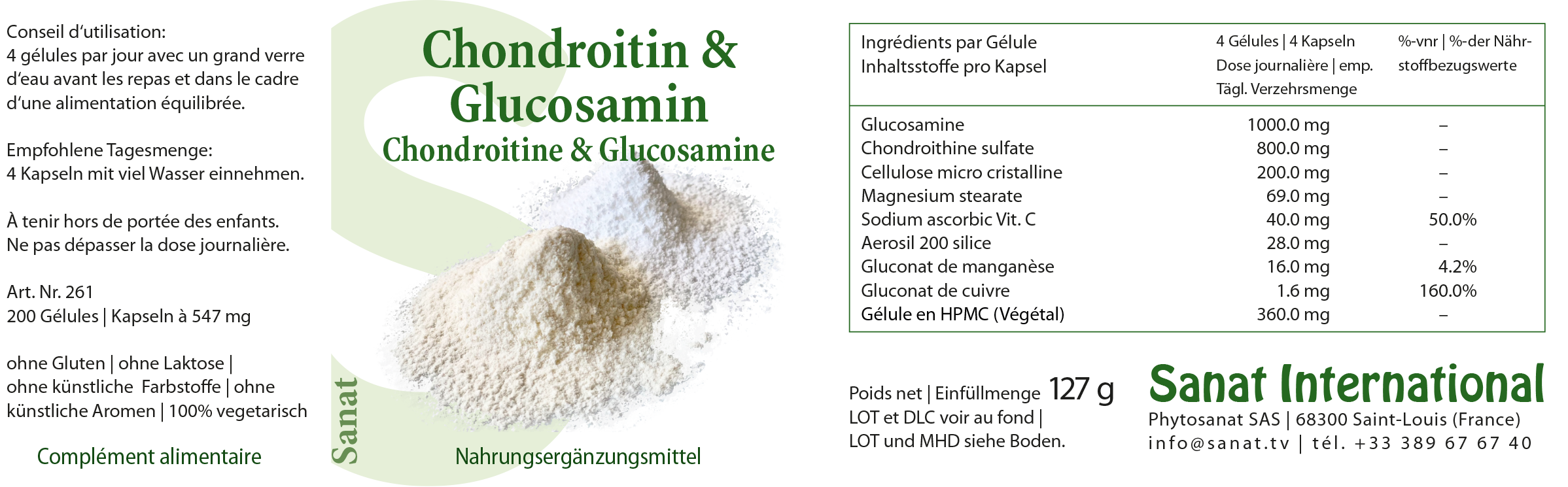 Glucosaminpulver 46%, Chondroitinsulfat 37%