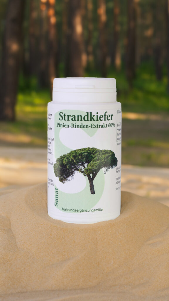Strandkiefern sind spezielle Arten von Kiefern oder auch Pinien genannt. Durch Ihre Anpassung an salzige Bedingungen wachsen sie auf sandigen und küstennahen Böden. Ihre Nadeln und Rinde können das Salz aus dem Boden und der Luft tolerieren, was viele andere Pflanzenarten nicht können. Besonders wertvoll ist ihr Gehalt an OPC, den sogenannten Oligomere Proanthocyanidine.