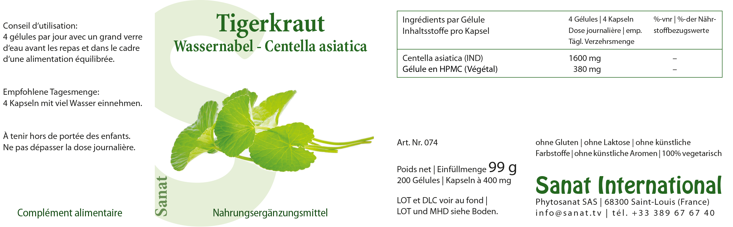 Centella asiatica Blattpulver IND 100%